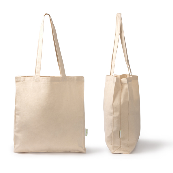 Lopis kangaskassi painatuksella tai ilman – luomupuuvillakassi sivu- ja pohjalevikkeillä 220 g/m²